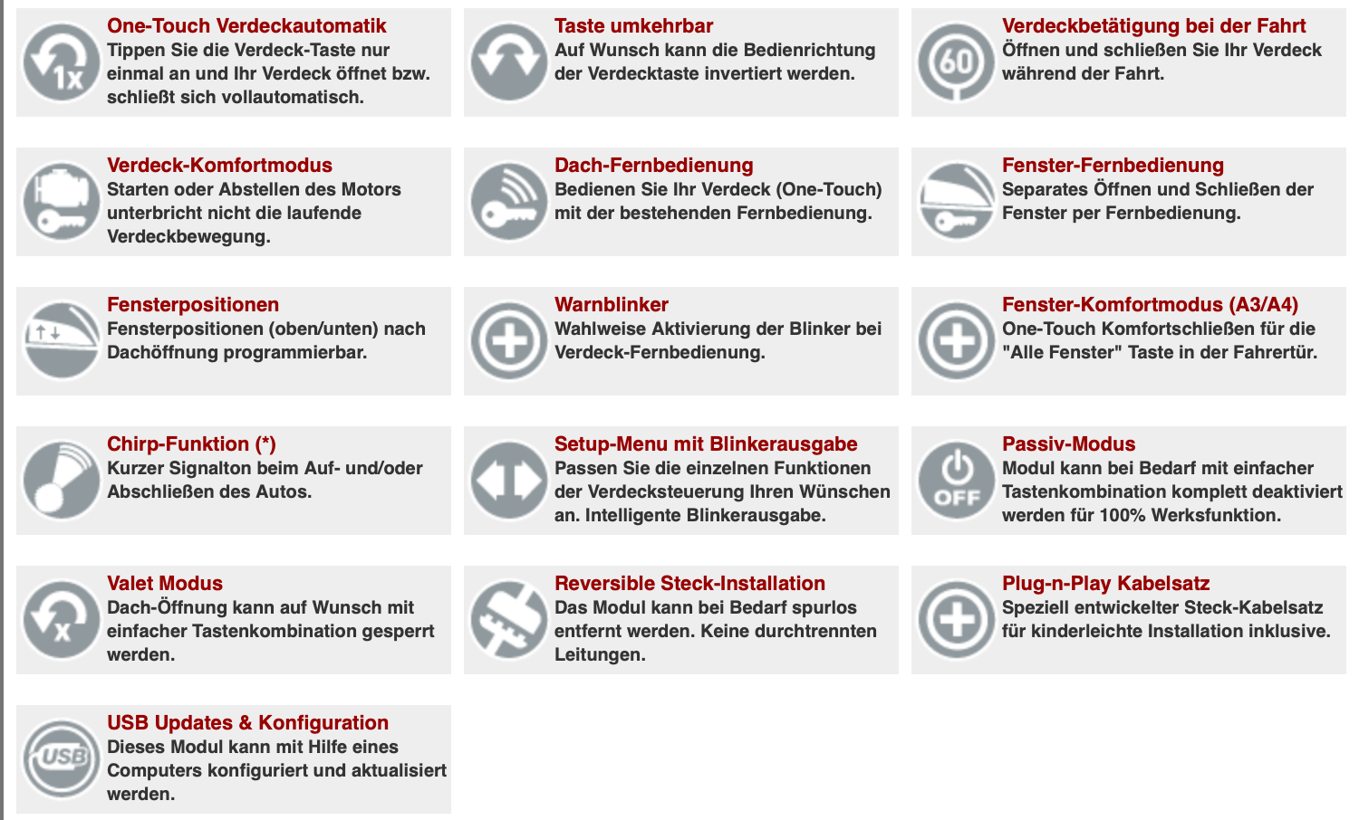 STLFAI1 Verdeckmodul - TT (8J), A3, A4, Golf 6, Gallardo